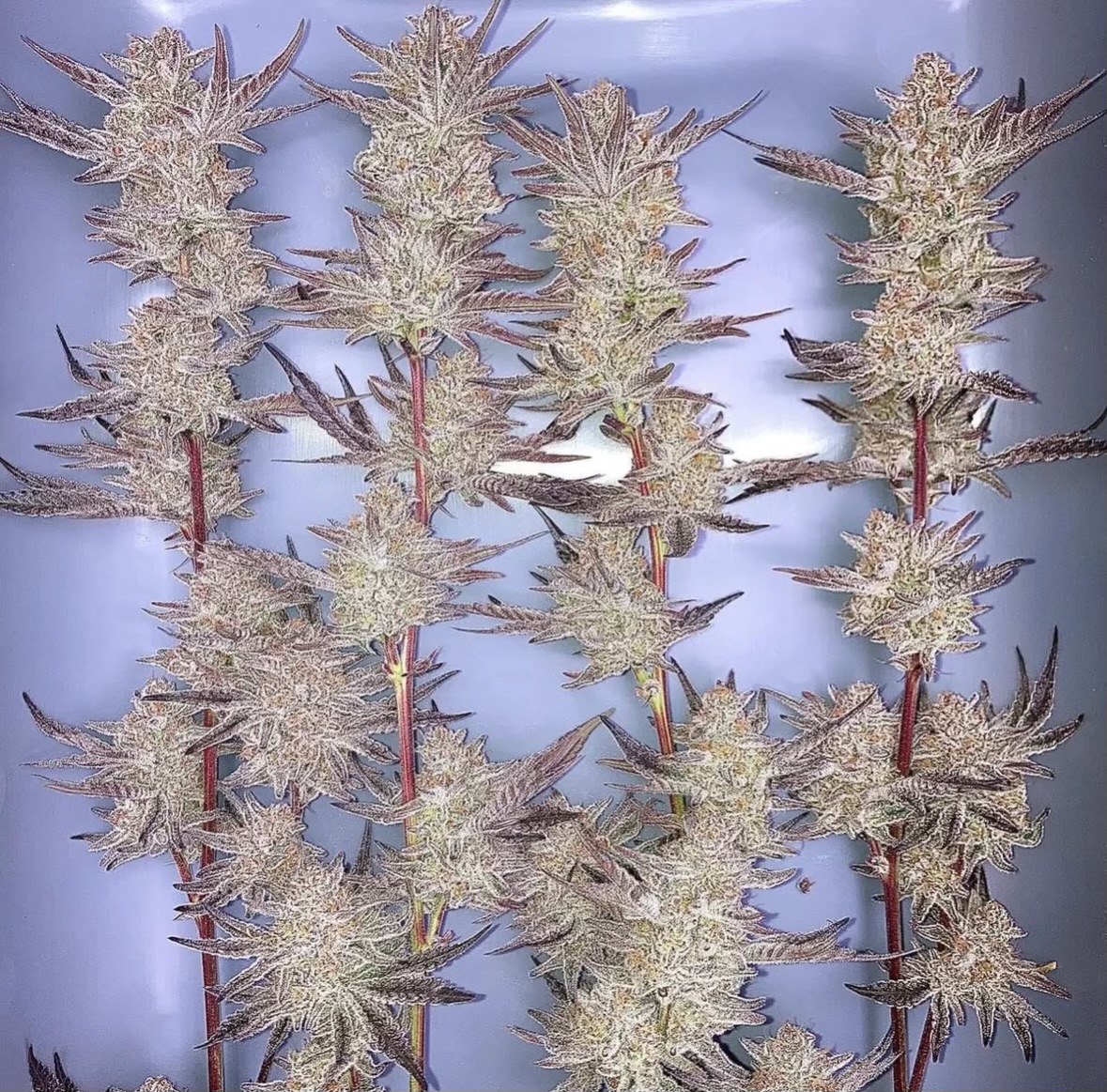 Is a hybrid cross between the 91’ Hollywood Pure Kush Female X (Evergladez aka the ZOZ BX to Zkittlez) creating this absurd lemonade Zkittlez terpene profile. From her intense high to amazing bag appeal this is another cultivar that checks all the boxes! Medium to Large yields. Another great cultivar for hash production.